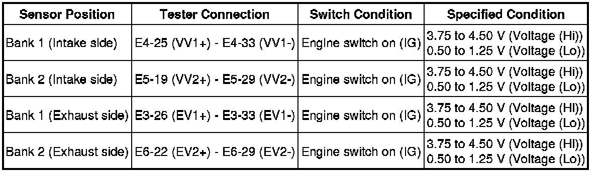 2. CHECK VVT SENSOR OUTPUT VOLTAGE