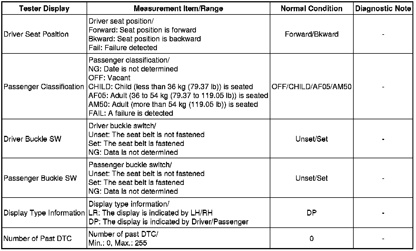 1. DATA LIST FOR CENTER AIRBAG SENSOR ASSEMBLY