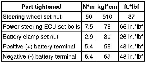 SPECIFICATIONS: POWER ASSIST SYSTEMS: TORQUE SPECIFICATIONS