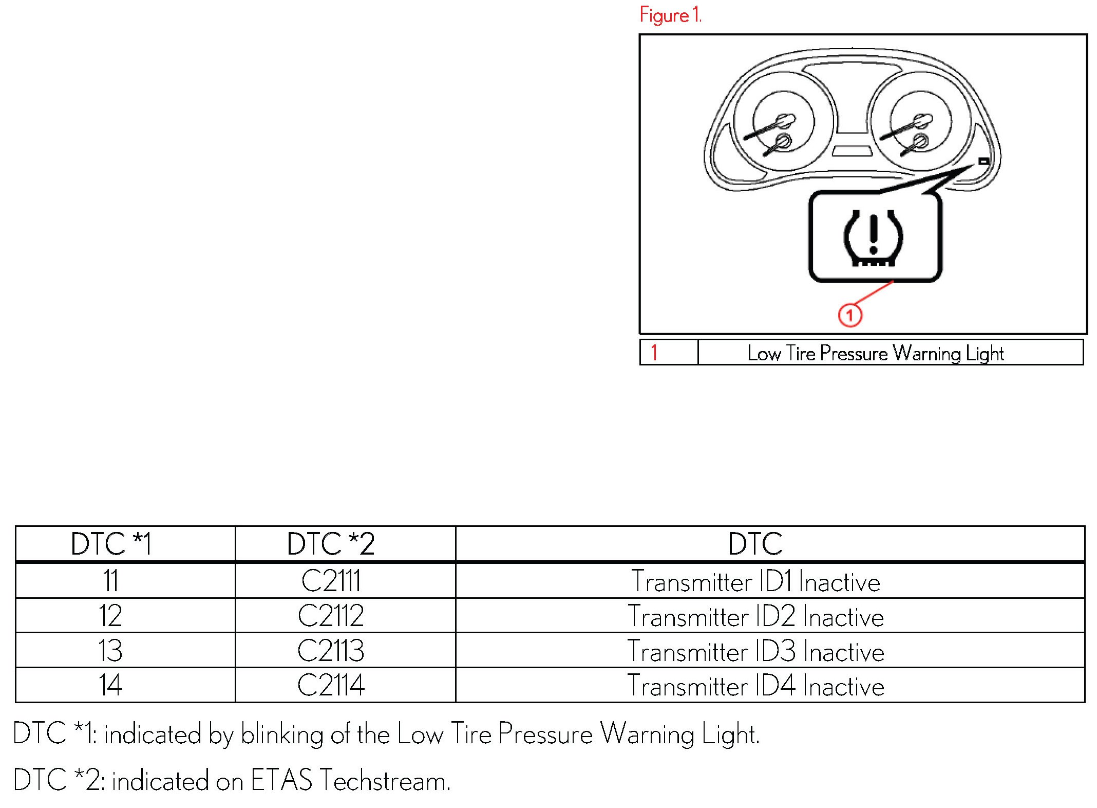 - The DTCs will automatically clear when the tire pressure warning valves/sensors are activated.
