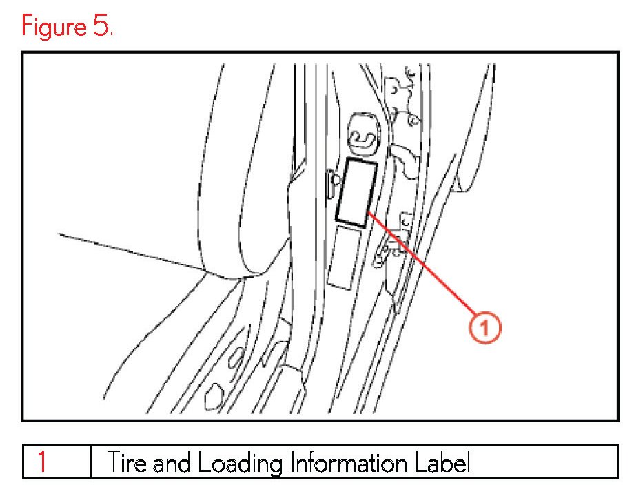 1. Adjust all tires to the standard tire inflation pressure, as indicated on the Tire and Loading Information label located inside the driver's door jamb.