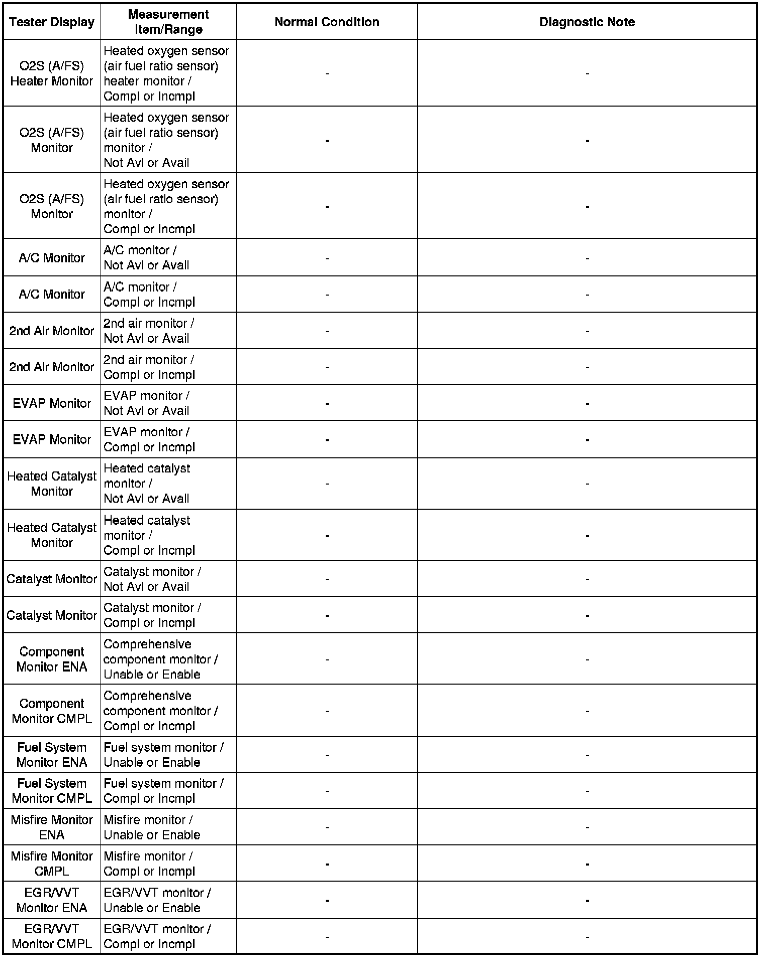 In the table below, the values listed under "Normal Condition" are reference values. Do not depend solely on these reference values when deciding whether a part is faulty or not.