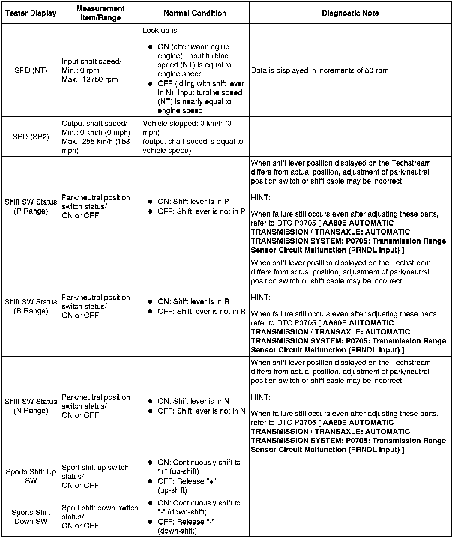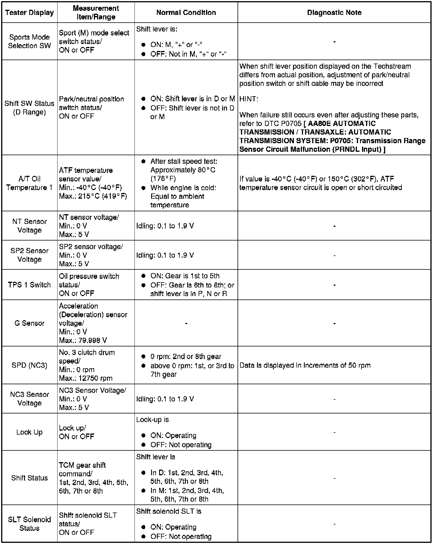 AA80E AUTOMATIC TRANSMISSION / TRANSAXLE: AUTOMATIC TRANSMISSION SYSTEM: DATA LIST / ACTIVE TEST