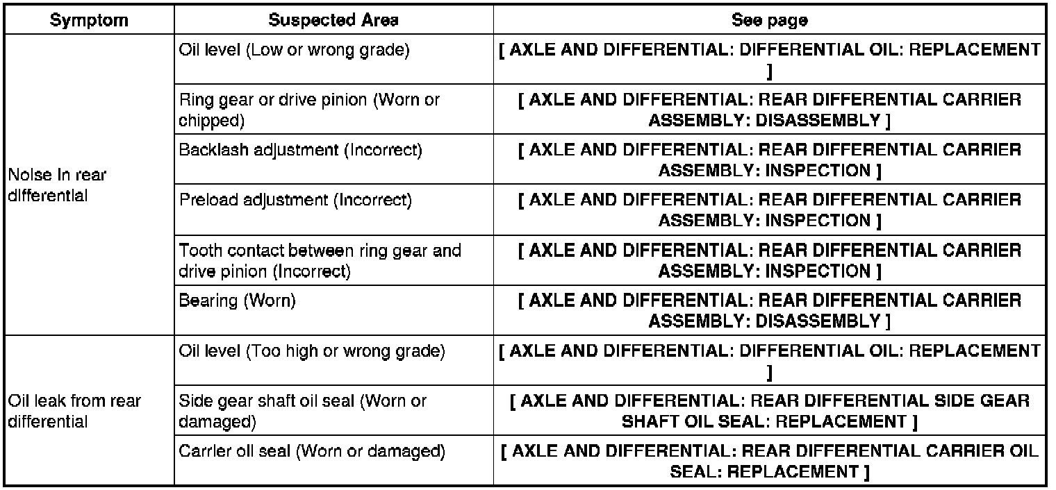 AXLE AND DIFFERENTIAL: DIFFERENTIAL SYSTEM: PROBLEM SYMPTOMS TABLE
