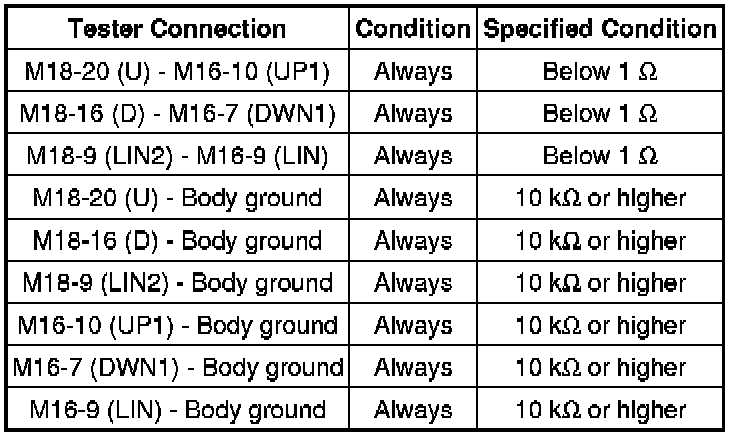 NG -- CHECK HARNESS AND CONNECTOR (MASTER SWITCH - DRIVER SIDE MOTOR)