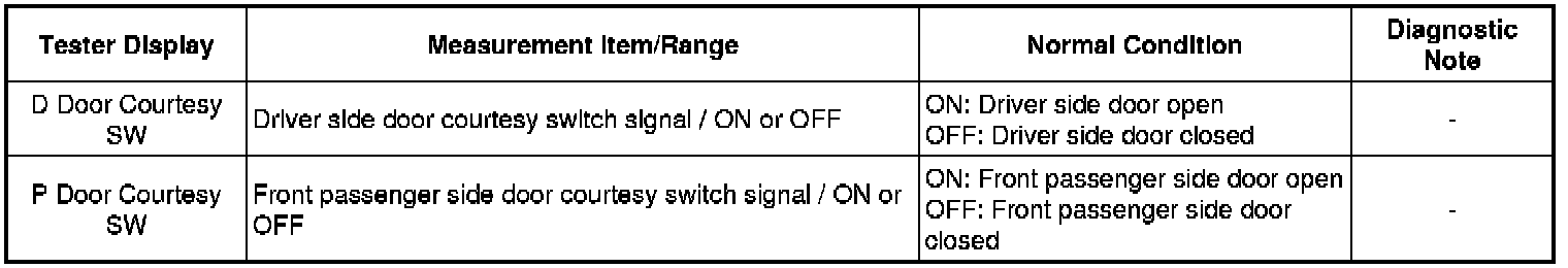 NG -- GO TO LIGHTING SYSTEM (Proceed to Door Courtesy Light Switch Circuit) Door Courtesy Switch Circuit