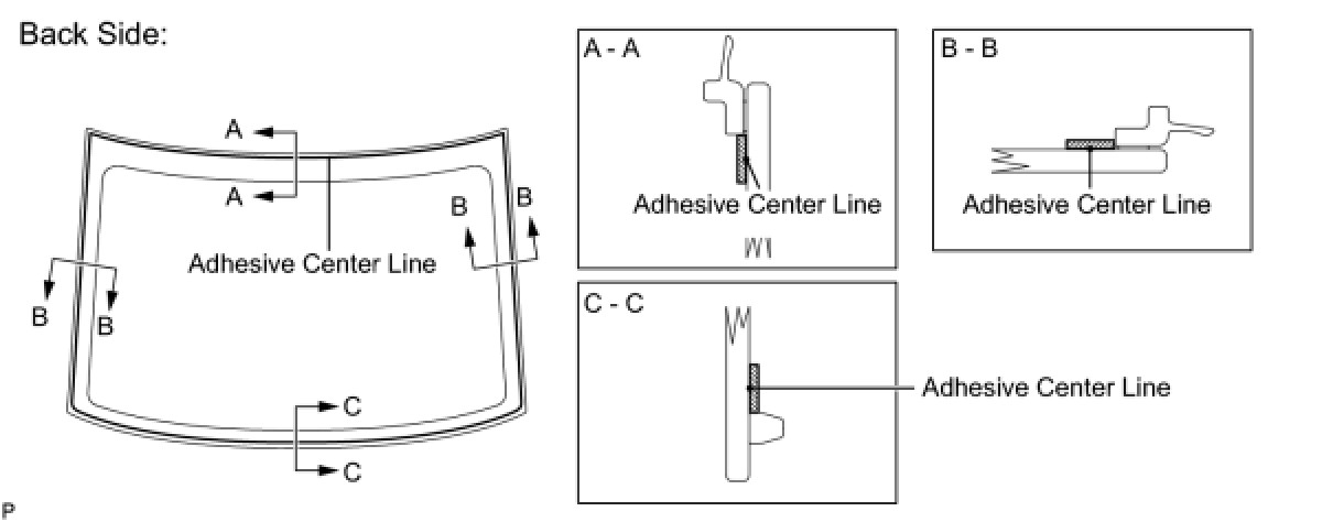 (3) Apply adhesive to the back window glass as shown in the illustration.
