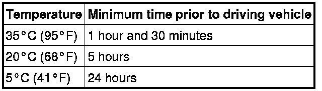 Do not drive the vehicle for the time described in the table below.