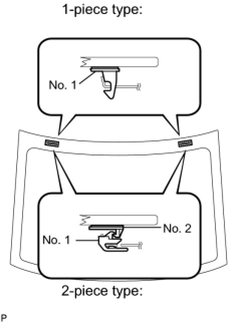 * There are No. 1 and No. 2 stoppers on the back window glass as shown in the illustration. Be careful not to damage the back window glass when cutting off the adhesive.