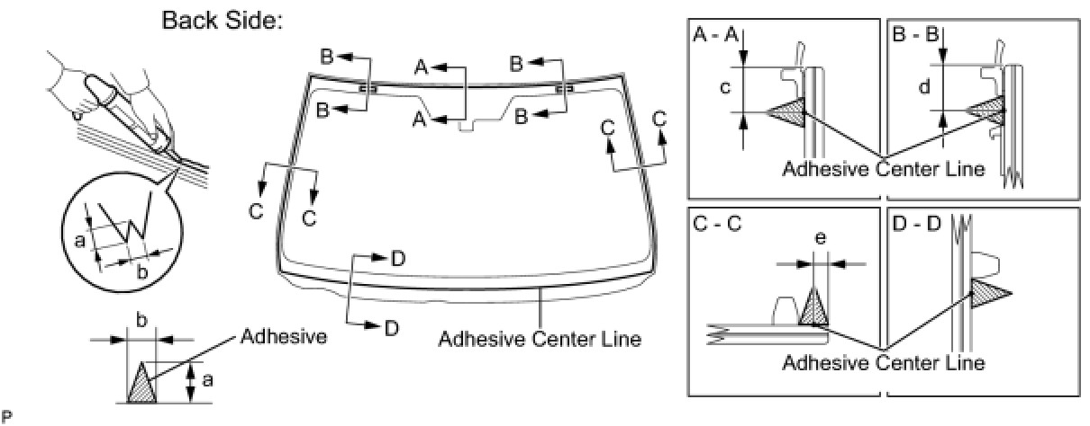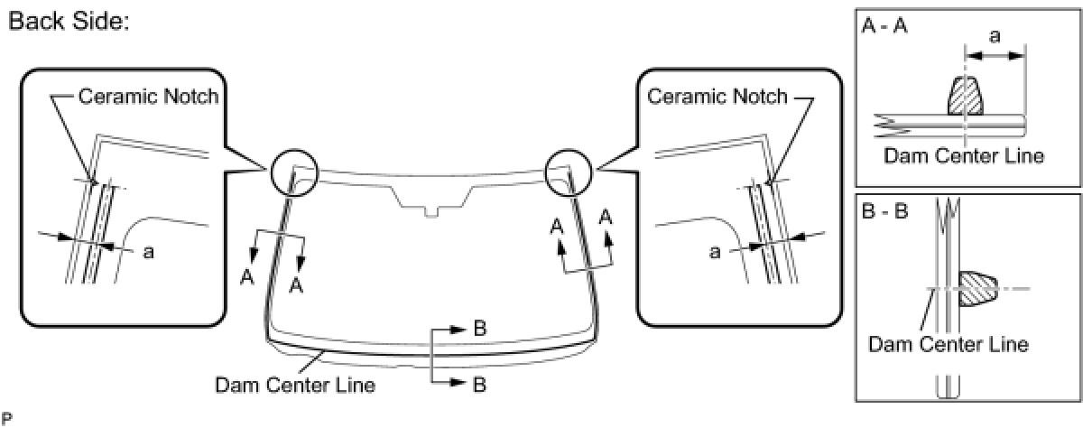 (b) Install a new adhesive dam onto the windshield glass, as shown in the illustration.