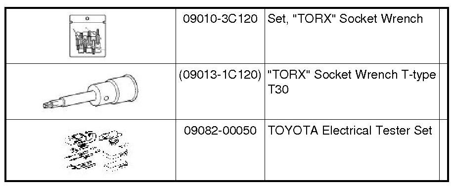 PREPARATION: WIPER / WASHER: RECOMMENDED TOOLS