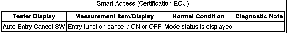 When the wireless operation can be used to lock and unlock the doors, the communication line between the door control receiver and certification ECU is normal. When the entry operation does not operate, one of the following may be the cause: 1) entry cancel function is set through customization; 2) malfunction in smart access system communication line (electrical key transmitter and vehicle); or 3) wave interference.