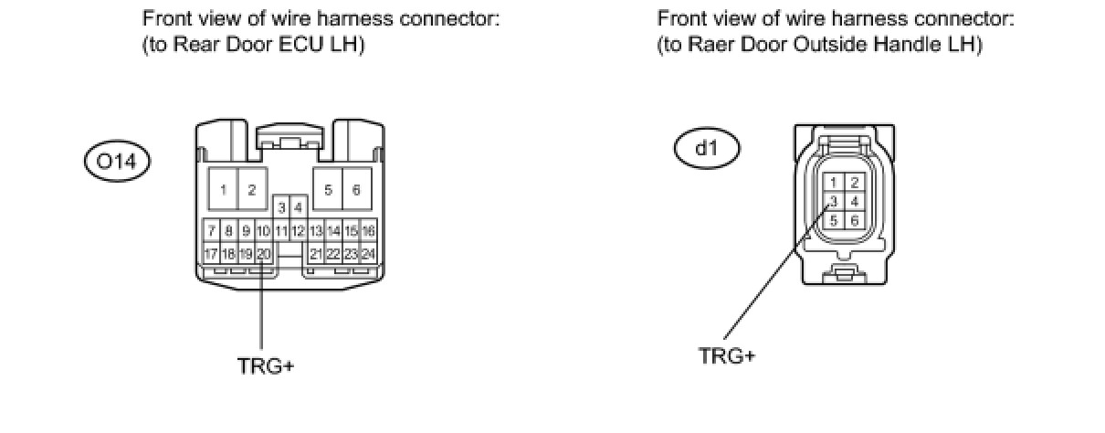 6. CHECK HARNESS AND CONNECTOR (REAR DOOR OUTSIDE HANDLE LH - REAR DOOR ECU LH)