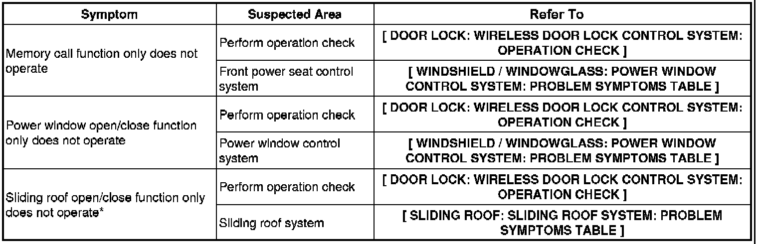 DOOR LOCK: WIRELESS DOOR LOCK CONTROL SYSTEM: PROBLEM SYMPTOMS TABLE