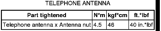 SERVICE SPECIFICATIONS: CELLULAR COMMUNICATION: TORQUE SPECIFICATIONS