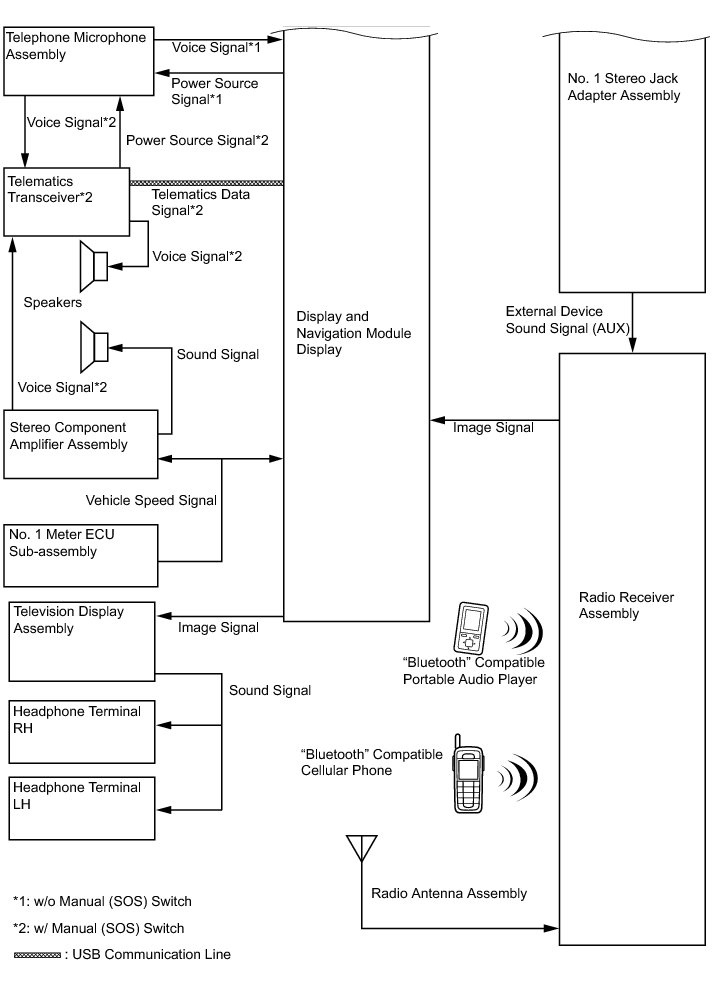 (a) Satellite Digital Audio Radio Service (SDARS) is a satellite digital radio broadcast provided by Sirius XM Radio Inc. The broadcast (pay-type) is performed through satellites and terrestrial repeater networks. Several unique channels are available, and even if a vehicle changes locations, the same information can be received without breaks. Information such as song names, broadcast station names, etc. can be received. Also, additional services may also be available.