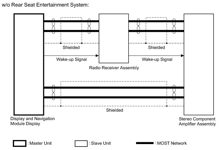(4) MOST communication lines connect each slave unit centering around the master unit to form a MOST network ring.