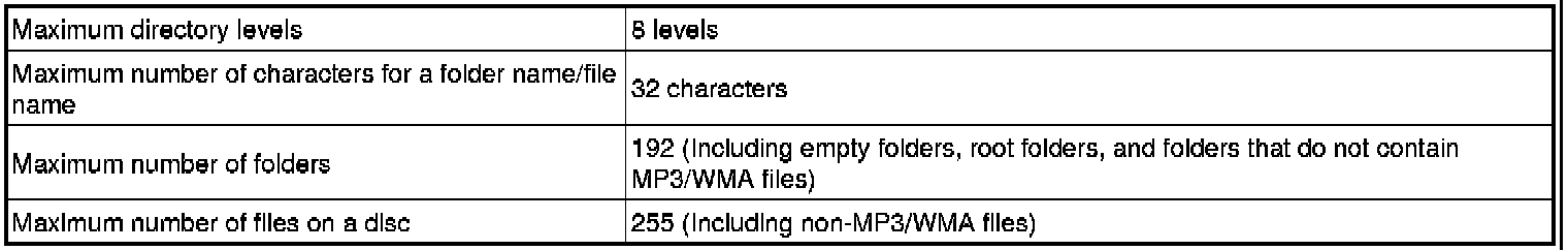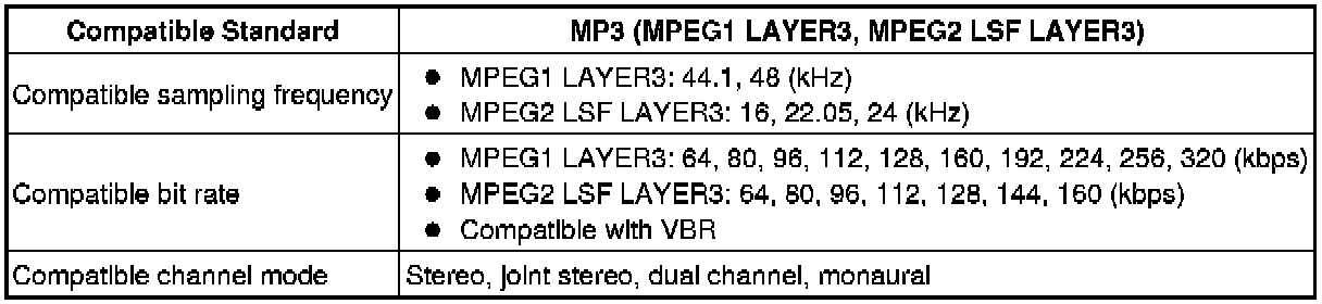 * As for MP3/WMA files written in any unlisted format, the contents of the files may not be played normally or the file names or folder names may not be displayed correctly.