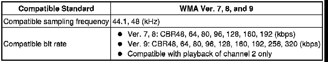 (2) Additional textual information called a WMA tag can be input to WMA files. Information such as song titles and artist names can be stored.