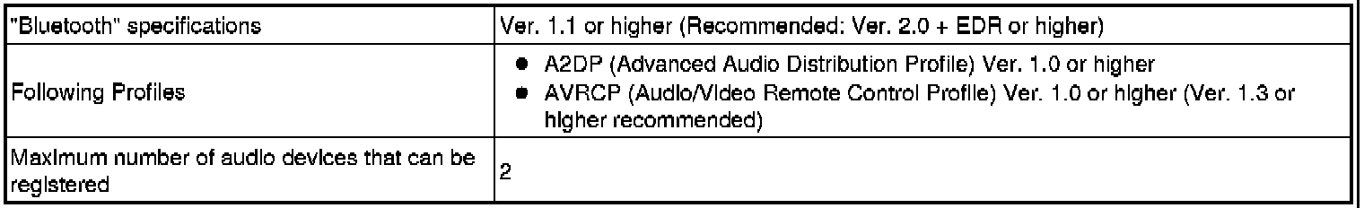 *: Some versions of "Bluetooth" compatible audio players may not be able to operate using the "Bluetooth" function, or music may play, but functions available using the radio receiver assembly may be limited.