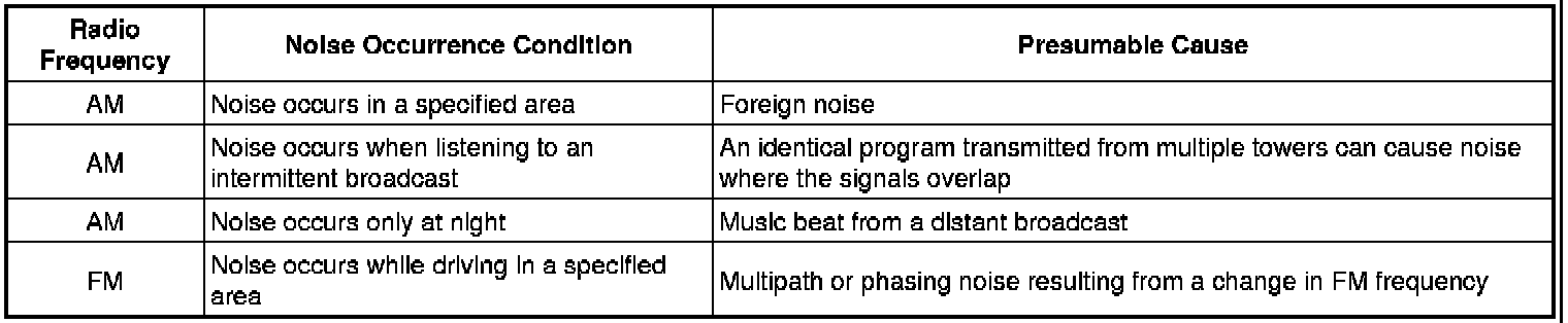 Technicians must have a clear understanding about each customer noise complaint. Use the following table to diagnose noise problems.