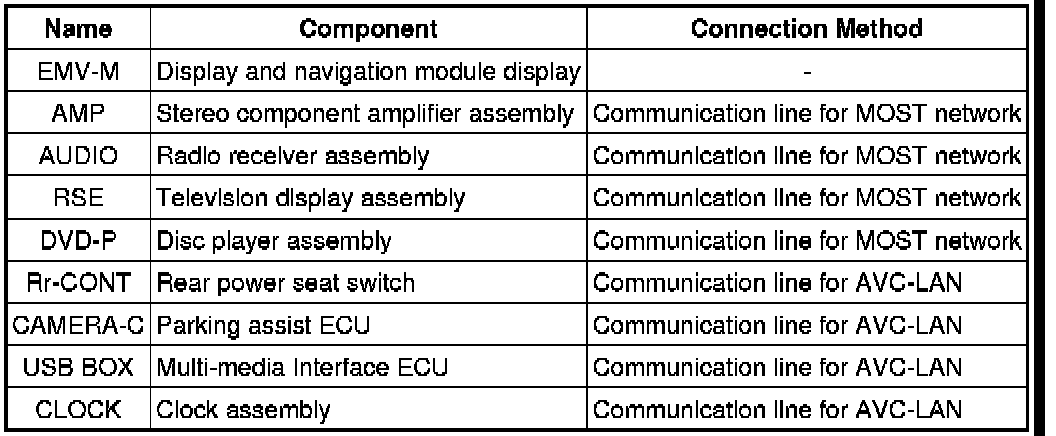 (1) Components of the navigation system communicate with each other via the AVC-LAN.