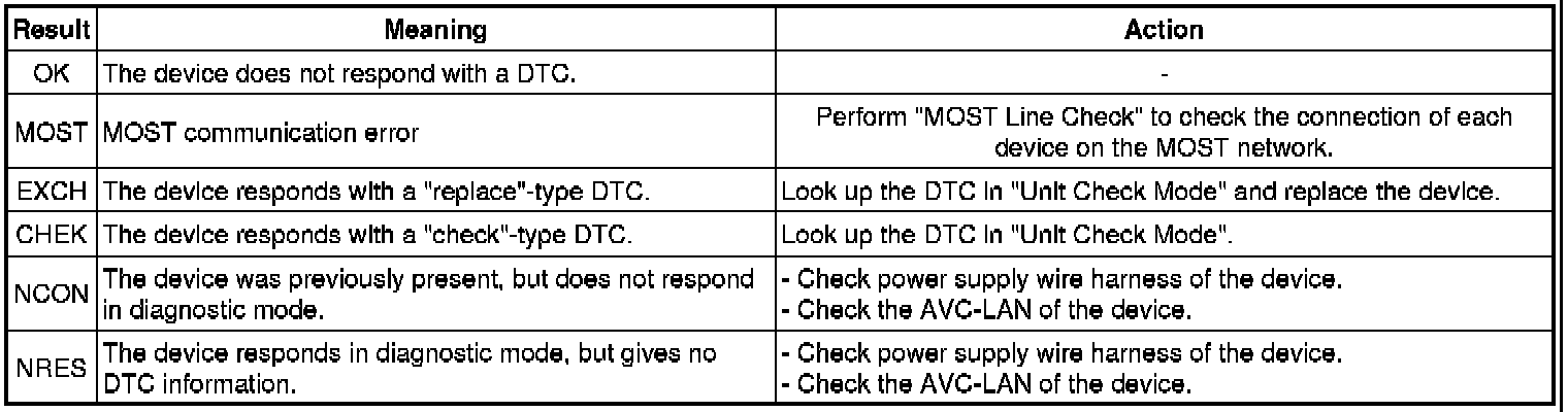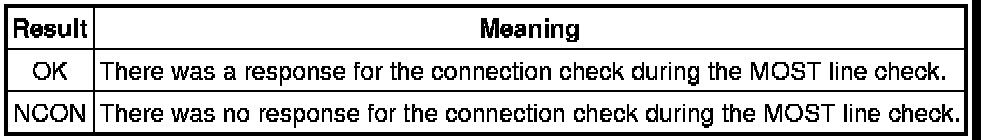 * The device name and result will not be displayed if there is no system registration record and no response for the connection check during the MOST line check even if the device is connected to the MOST network.
