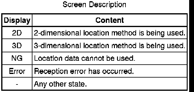* Information from a maximum of 12 satellites is displayed on the screen. This information includes the target GPS satellite number, elevation angle, direction and signal level.