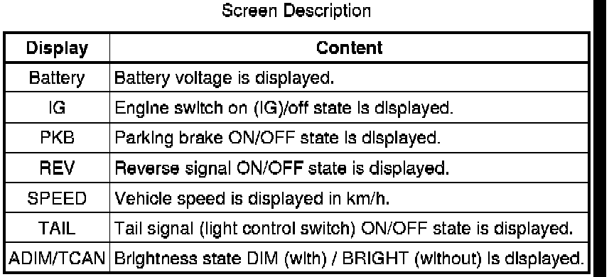 (4) Vehicle Signal Check Mode Screen