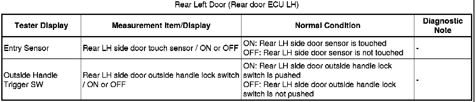 - Rear Door LH Entry Lock and Unlock Functions do not Operate
