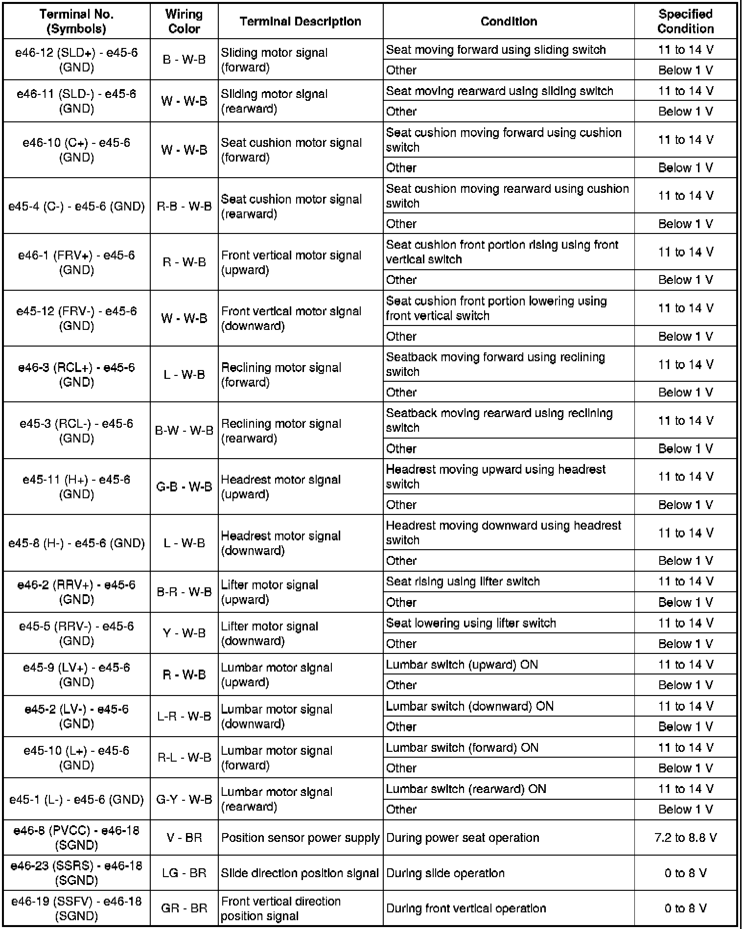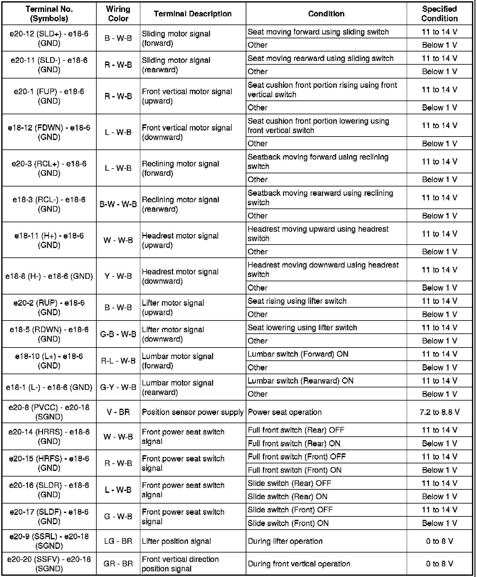 SEAT: FRONT POWER SEAT CONTROL SYSTEM: TERMINALS OF ECU