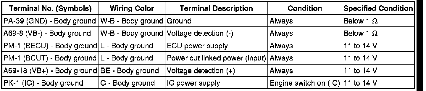 (c) Reconnect the PA, PM, PK and A69 ECU connectors.