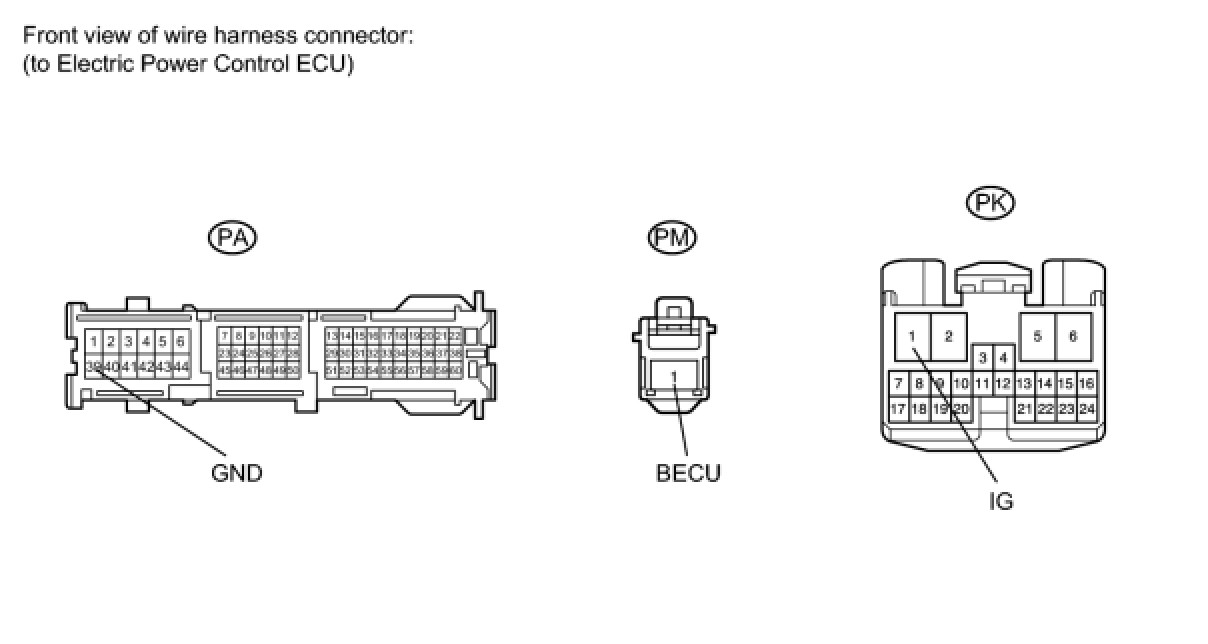 (b) Disconnect the PA, PK and PM electric power control ECU connectors.