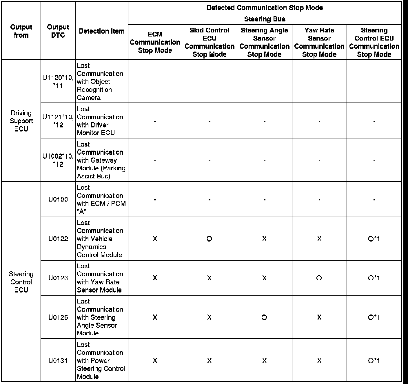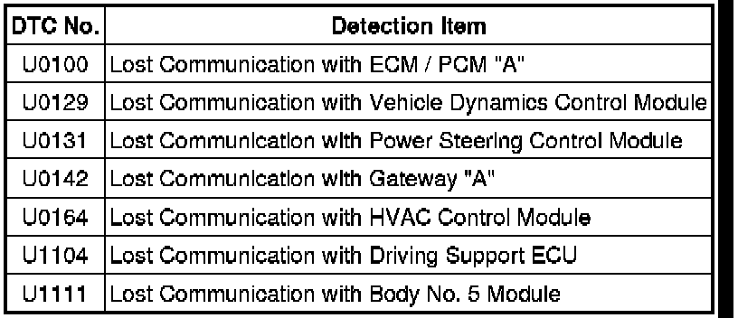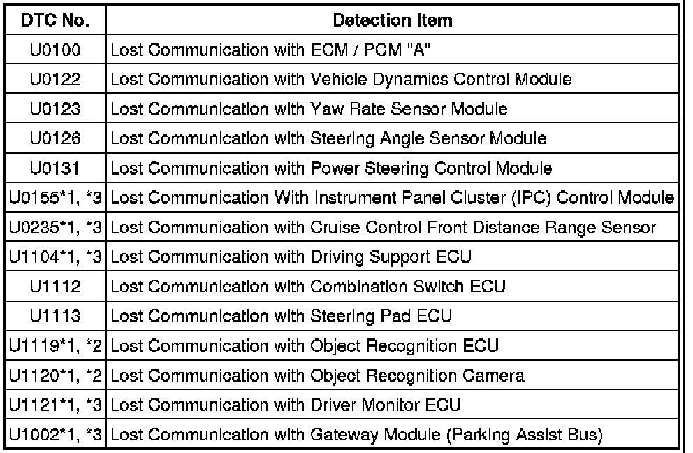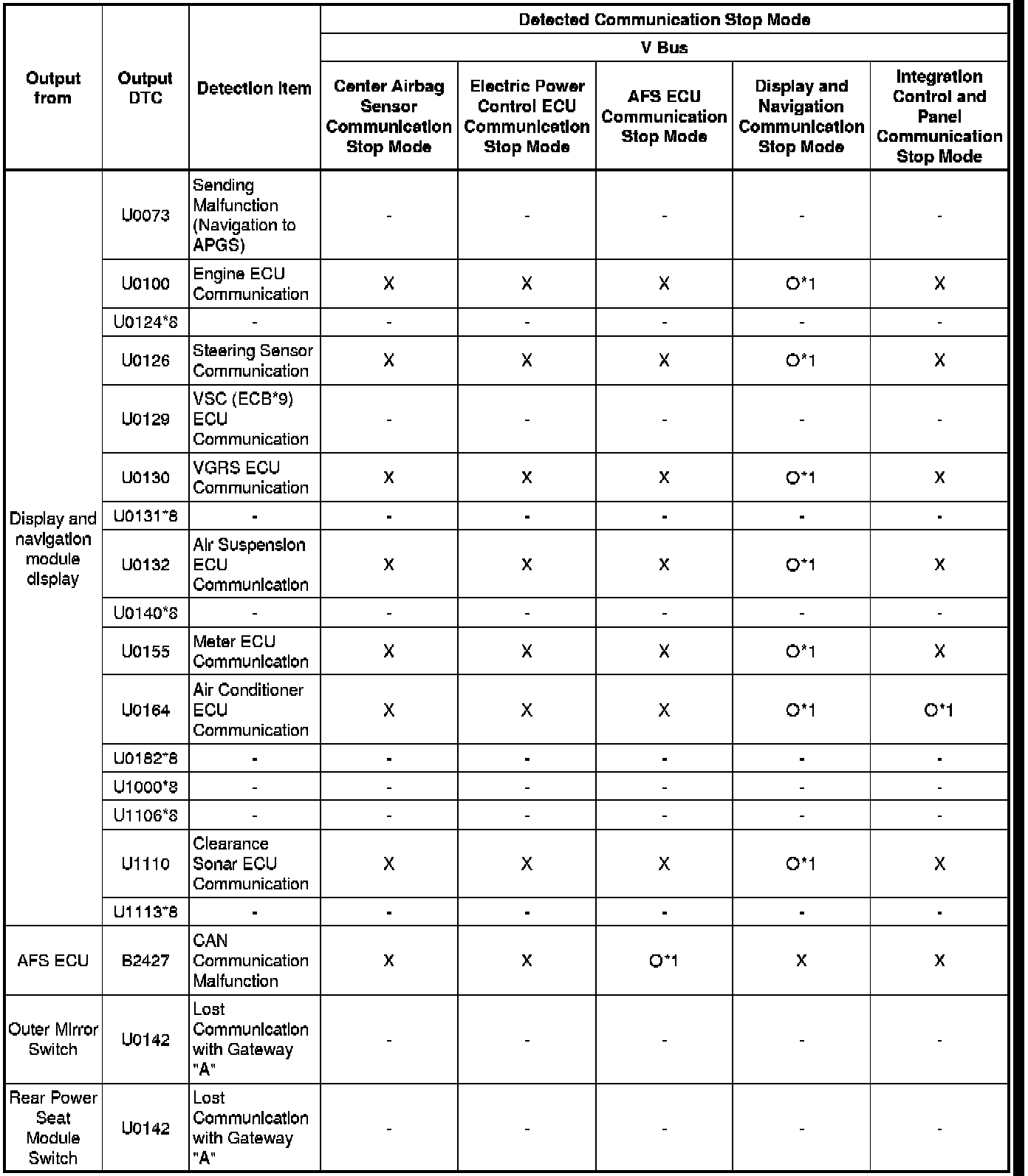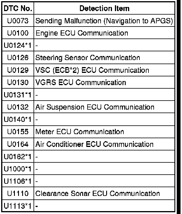 * *1: The DTC is not output to the intelligent tester. It is only output to the screen of the display and navigation module display.
