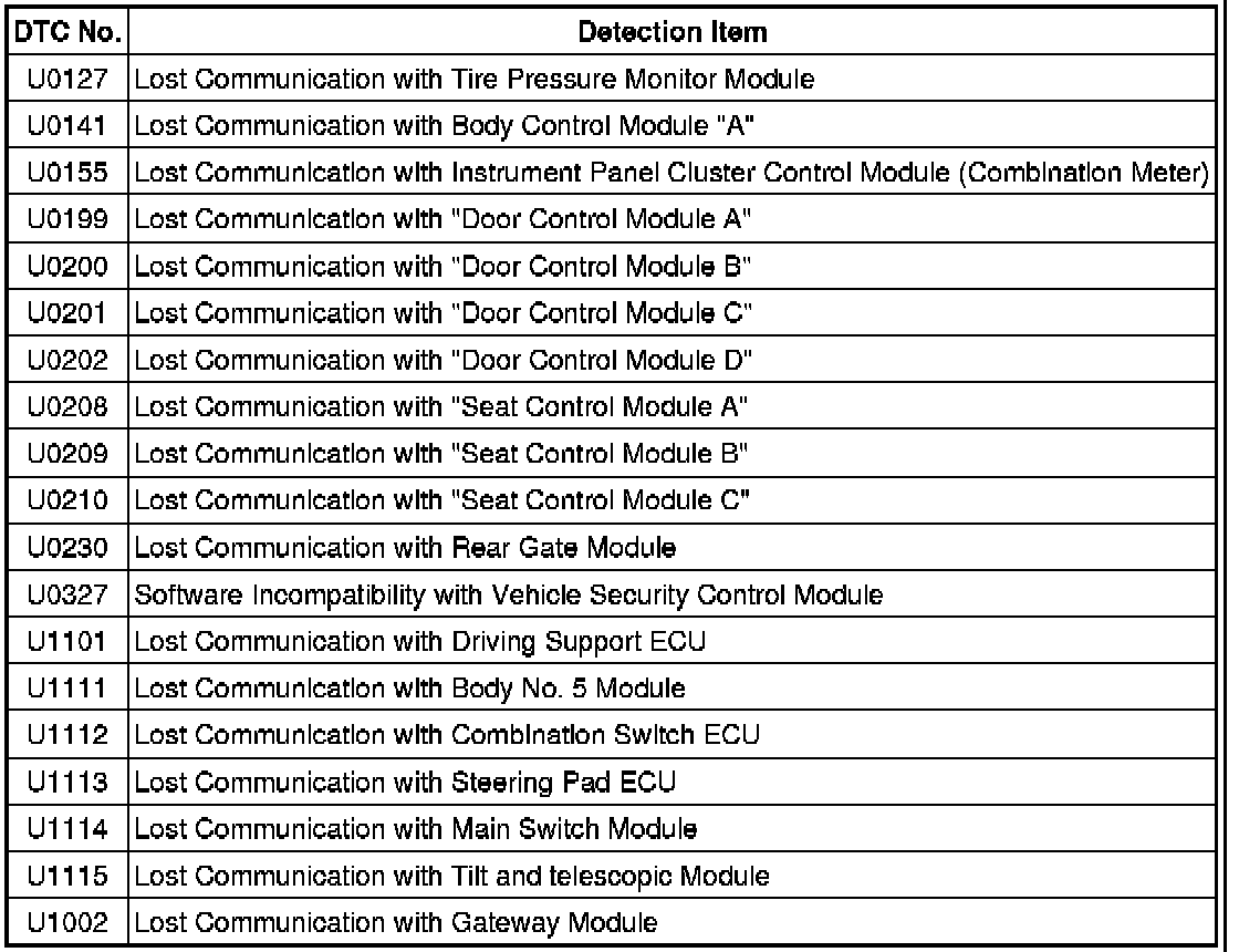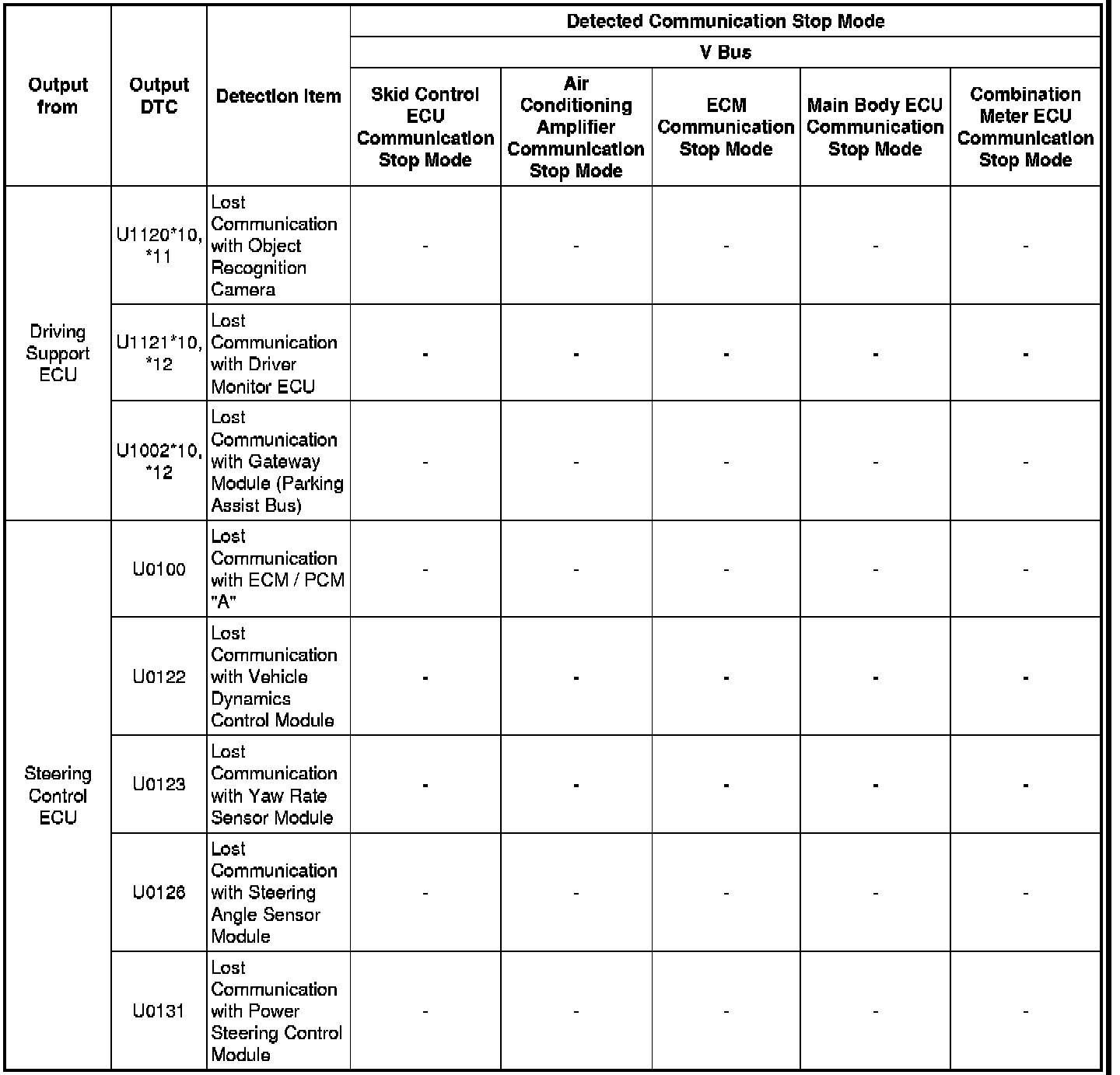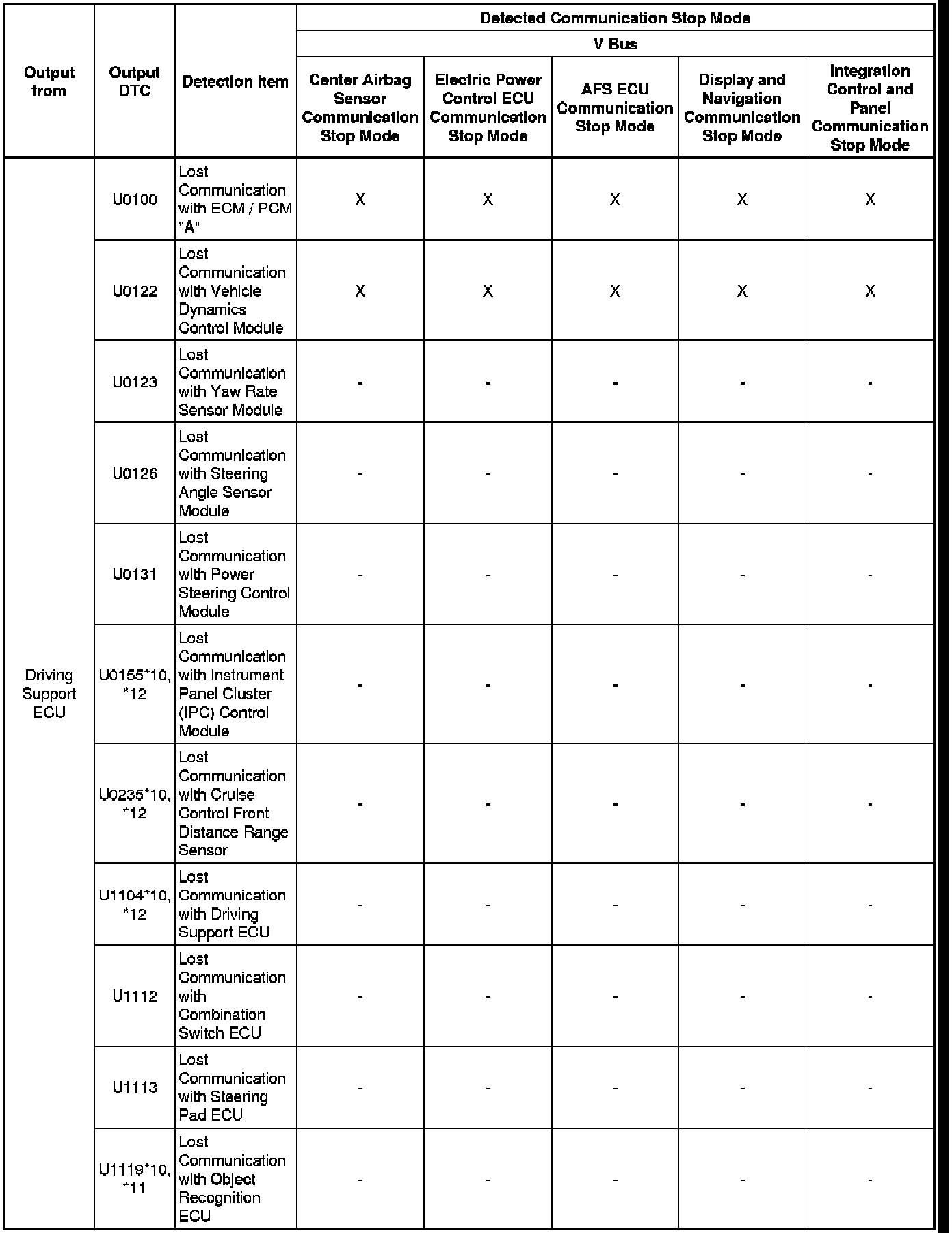* *1: The DTC is not output to the intelligent tester. It is only output to the screen of the display and navigation module display.