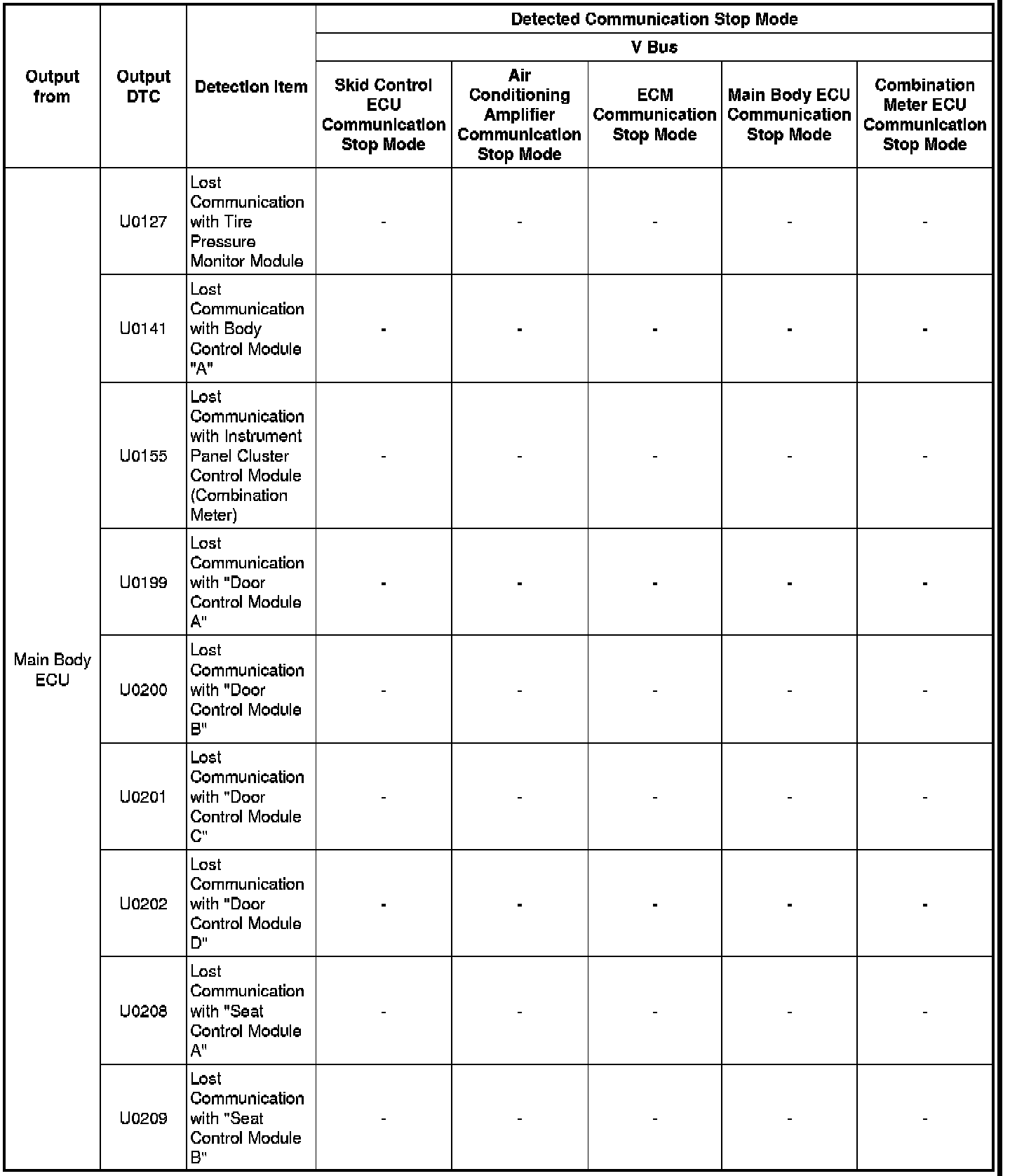 The front multiplex network door ECU LH is connected to the CAN communication system but CAN communication DTCs are not output.