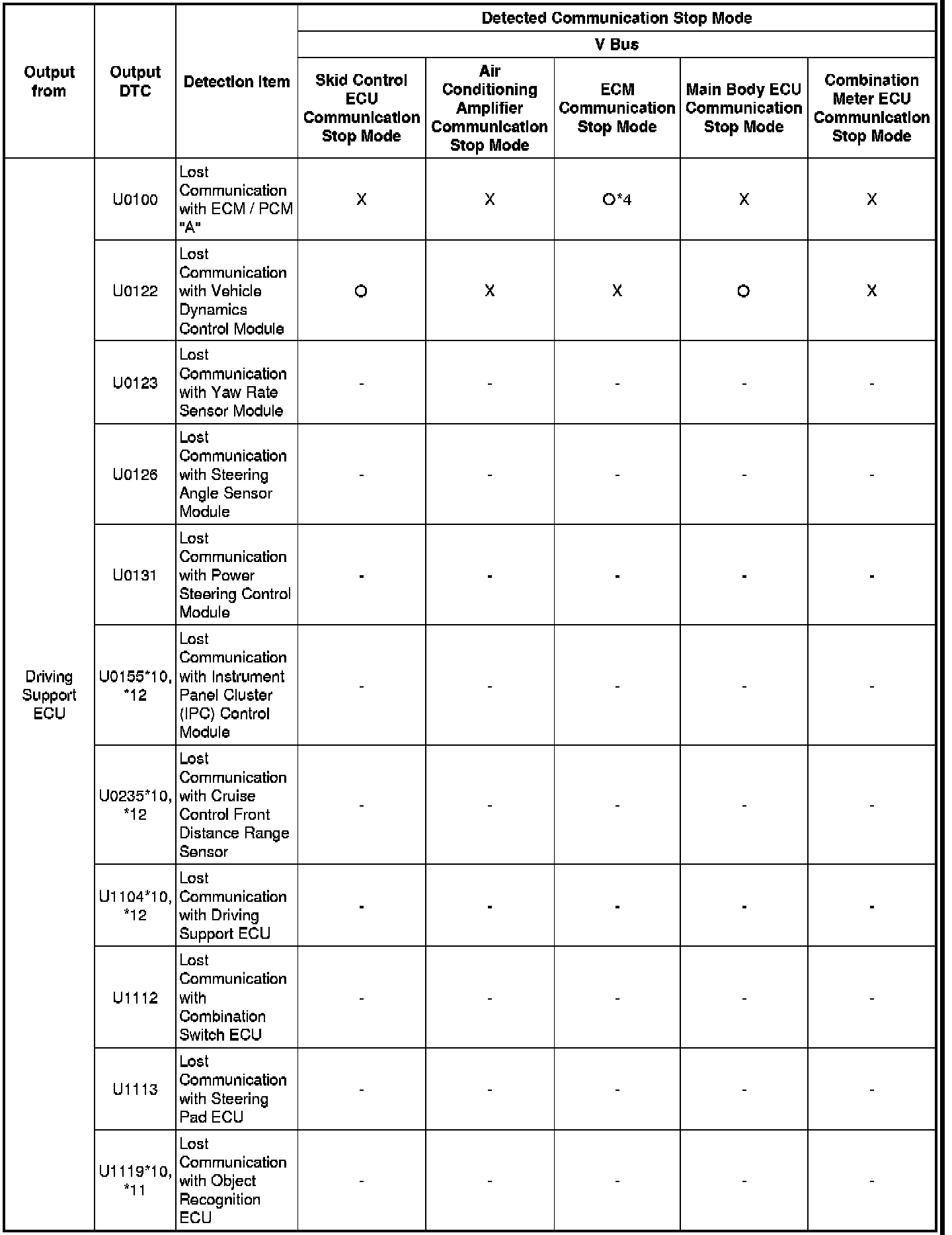 * *12: Refer to the Diagnostic Trouble Code Chart CAN Communication System.