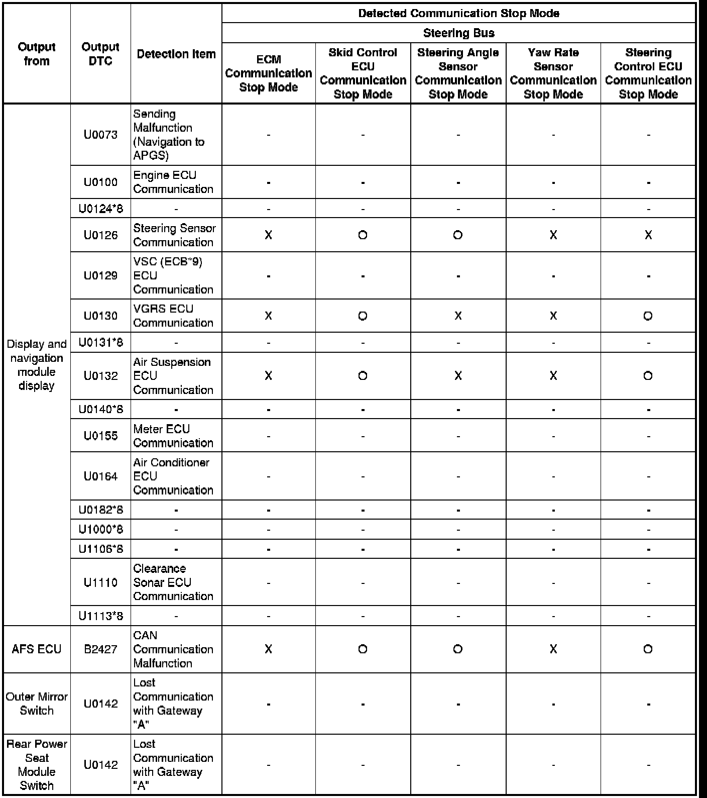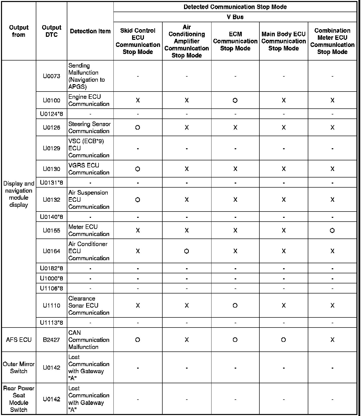 * *8: The DTC is not output to the Techstream. It is only output to the screen of the display and navigation module display.