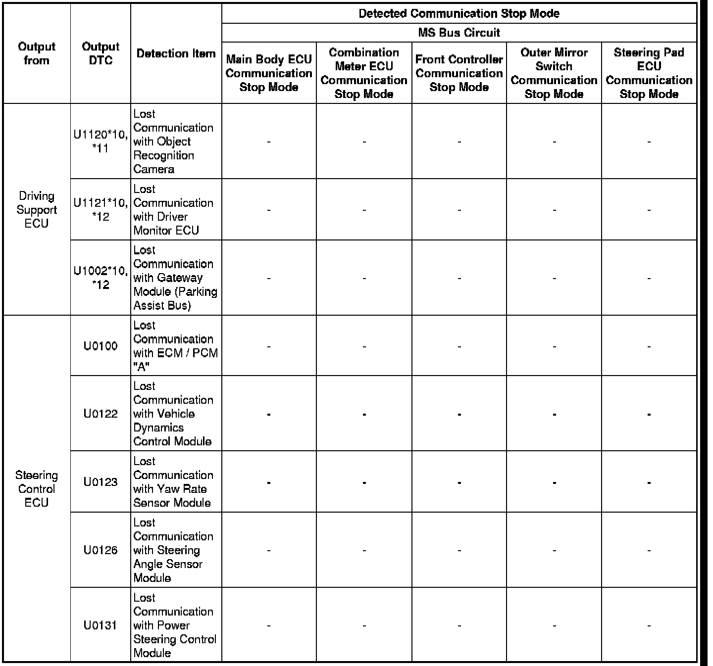 * *11: Refer to the Lane Keeping Assist System U1119.