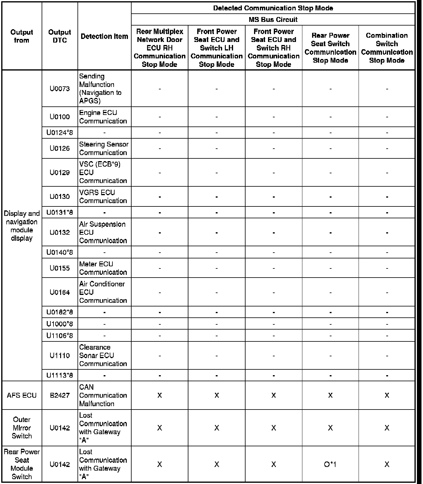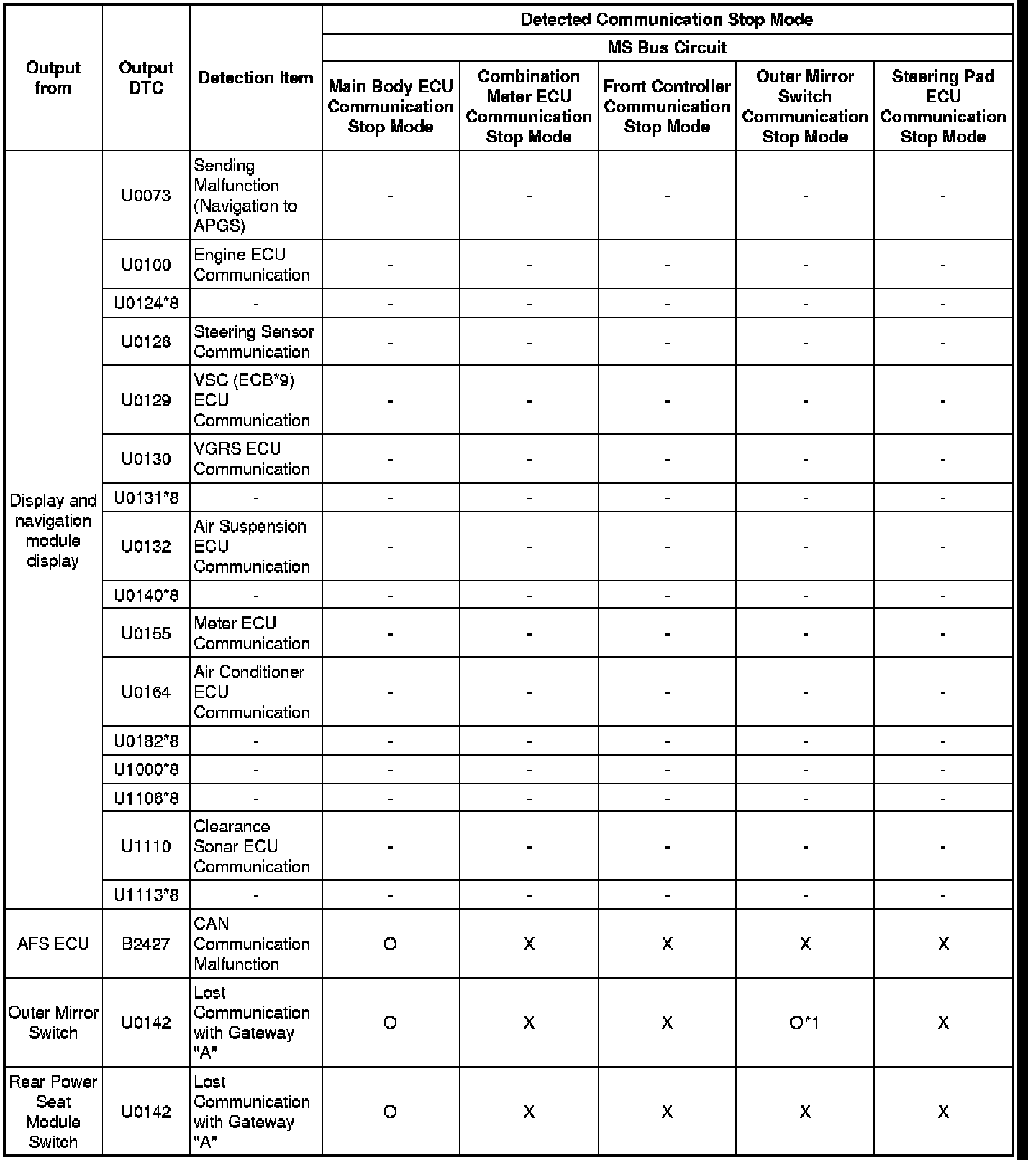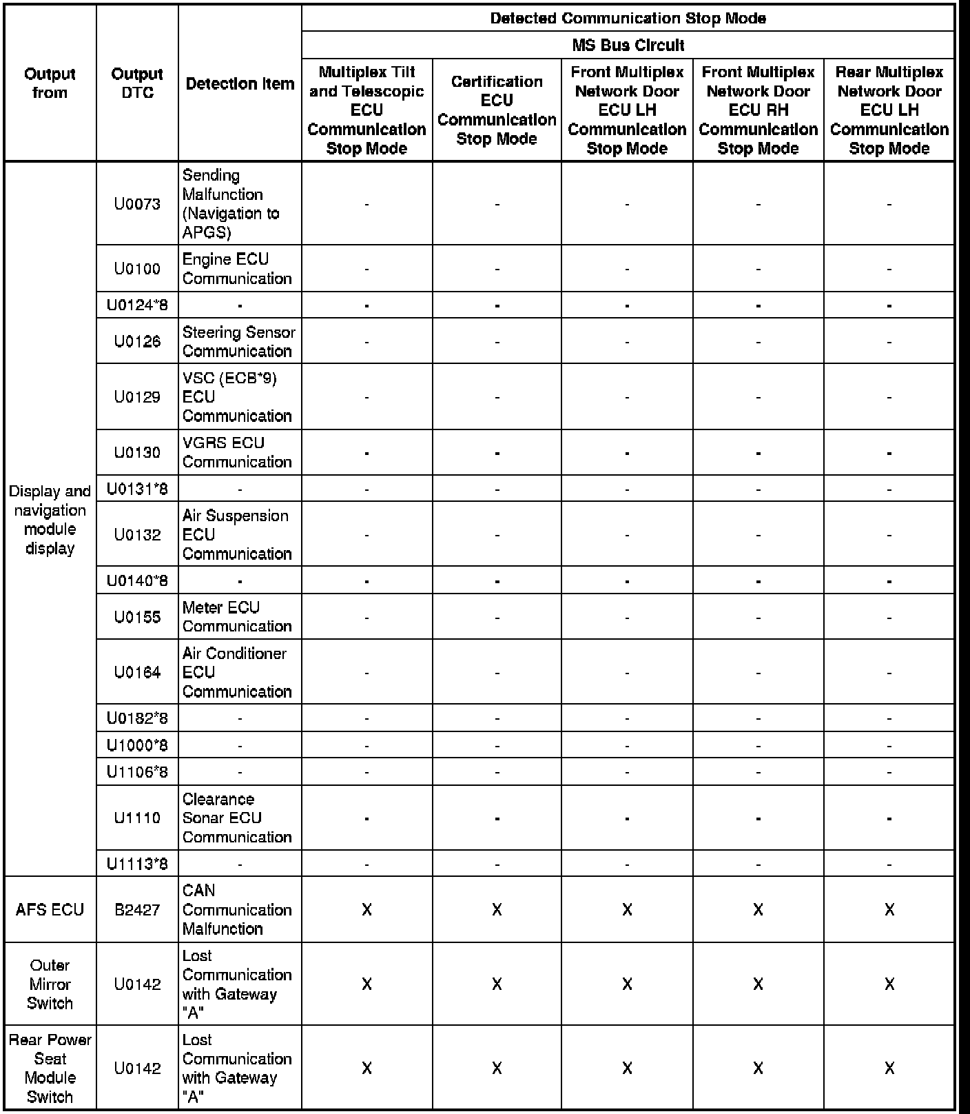 * *8: The DTC is not output to the Techstream. It is only output to the screen of the display and navigation module display.
