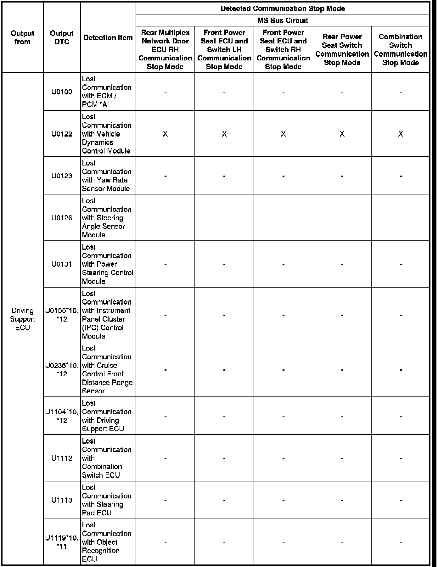 * *12: Refer to the Diagnostic Trouble Code Chart CAN Communication System.