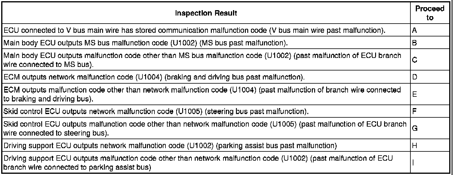 * For V bus main wire malfunctions, related ECUs are also detected. Therefore, determine the malfunctioning area based on all of the DTCs that are output.