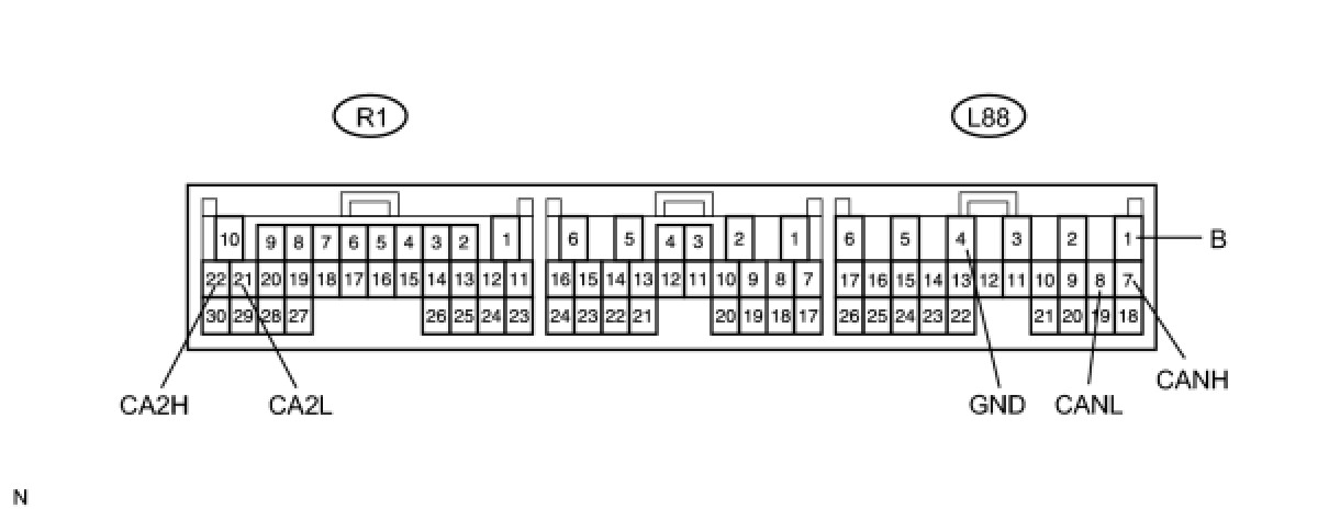 (a) Disconnect the L88 and R1 ECU connectors.
