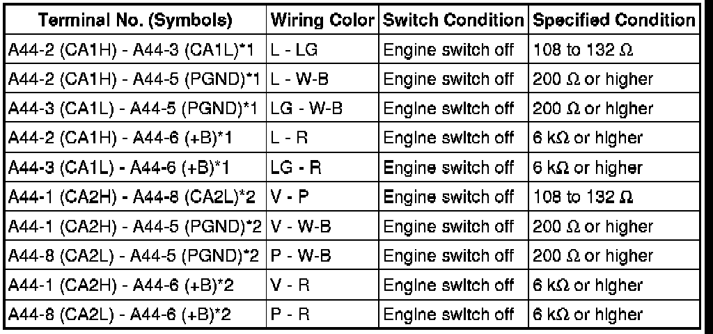 (c) Measure the resistance according to the value(s) in the table below.