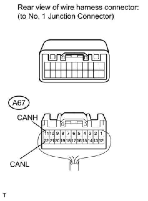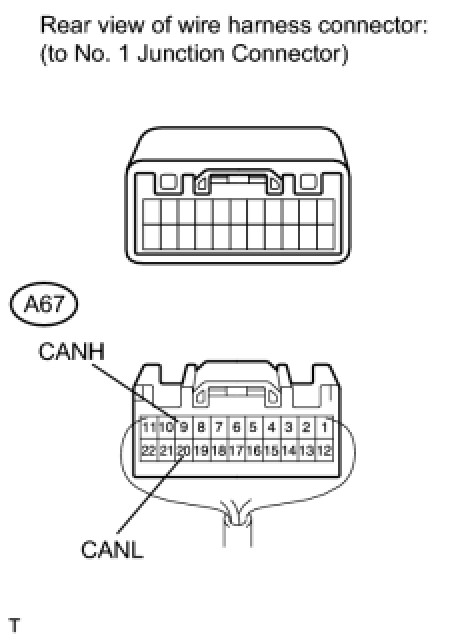 (a) Disconnect the A67 No. 1 junction connector connector.
