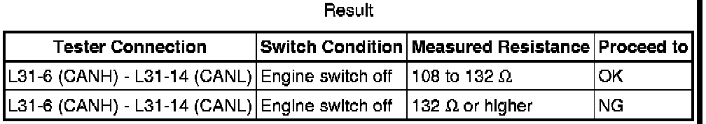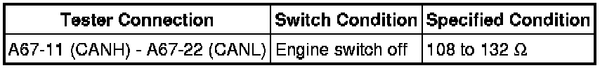 When the measured value is 132 Ohms or higher and a CAN communication system diagnostic trouble code is output, there may be fault besides disconnection of the DLC3 branch wire. For that reason, troubleshooting should be performed again from "HOW TO PROCEED WITH TROUBLESHOOTING" How to Proceed With Troubleshooting after repairing the trouble area.