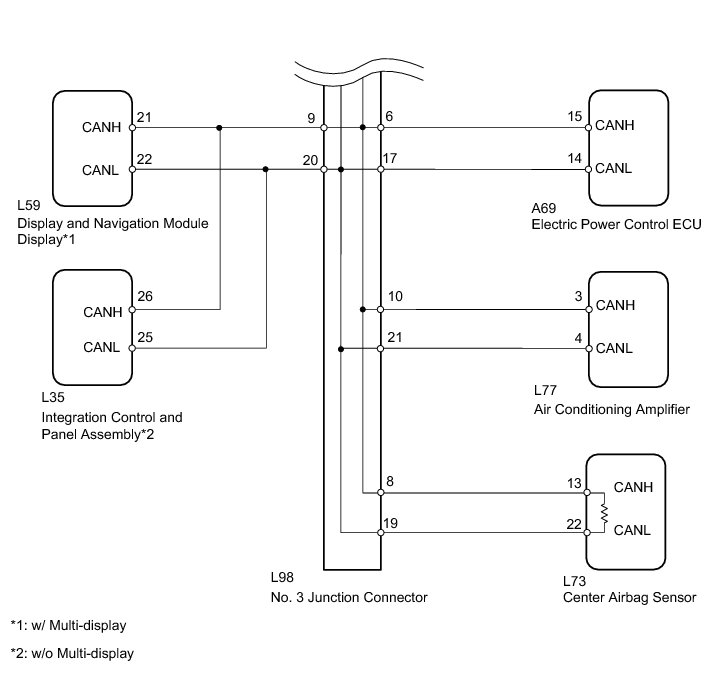 For vehicles without multi-display, go to "CHECK CAN BUS LINES FOR SHORT CIRCUIT (NO. 3 JUNCTION CONNECTOR - INTEGRATION CONTROL AND PANEL ASSEMBLY)".