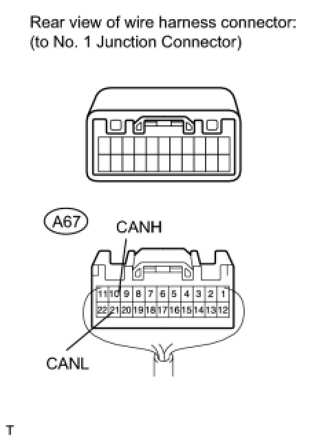 (a) Disconnect the A67 No. 1 junction connector connector.