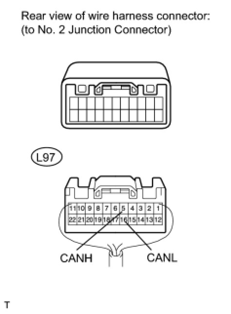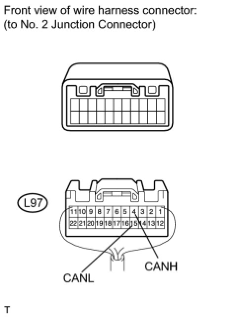 (a) Disconnect the L97 No. 2 junction connector connector.