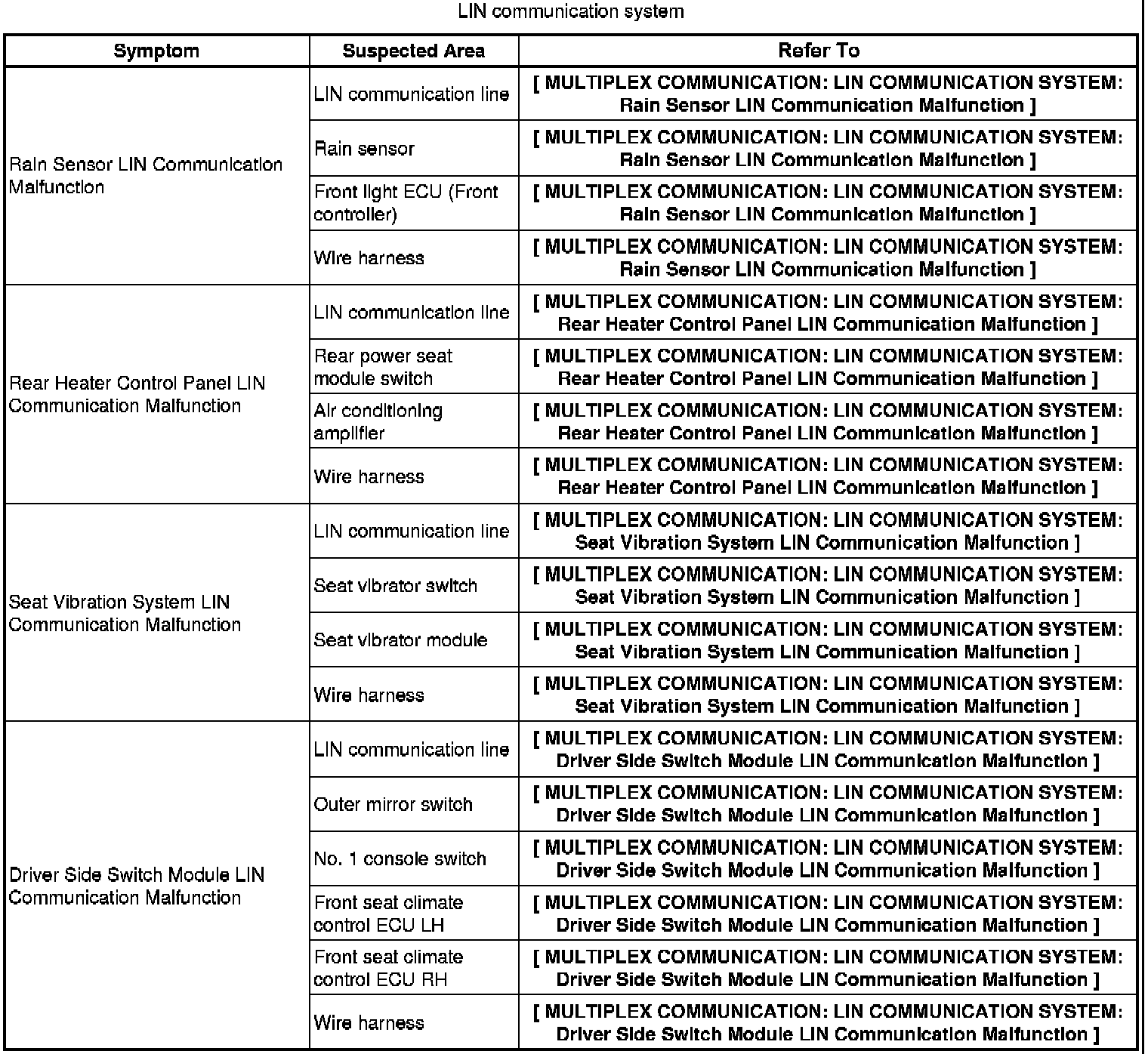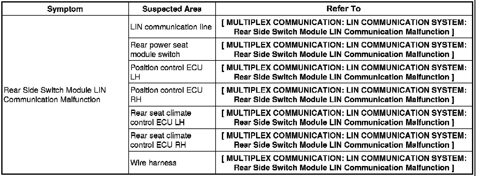 MULTIPLEX COMMUNICATION: LIN COMMUNICATION SYSTEM: PROBLEM SYMPTOMS TABLE